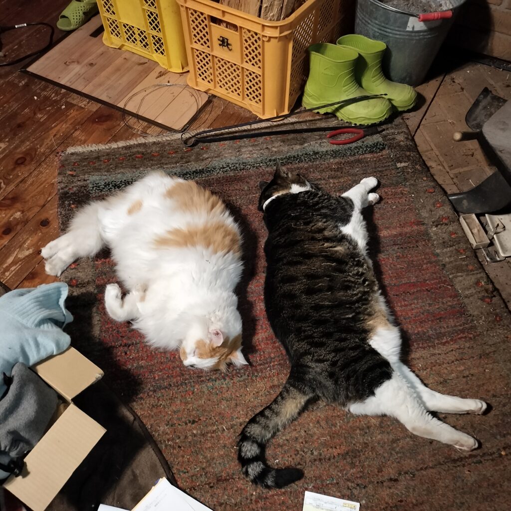 でも、薪ストーブの前で幸せそうに眠るチビ太やミコ太の姿を見ると、やはり頑張らねば!と思います〜!