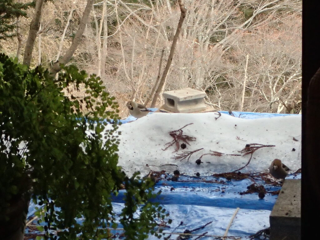 そして今日、仲間たちが帰った後で、シメの群れの来訪がありました!
