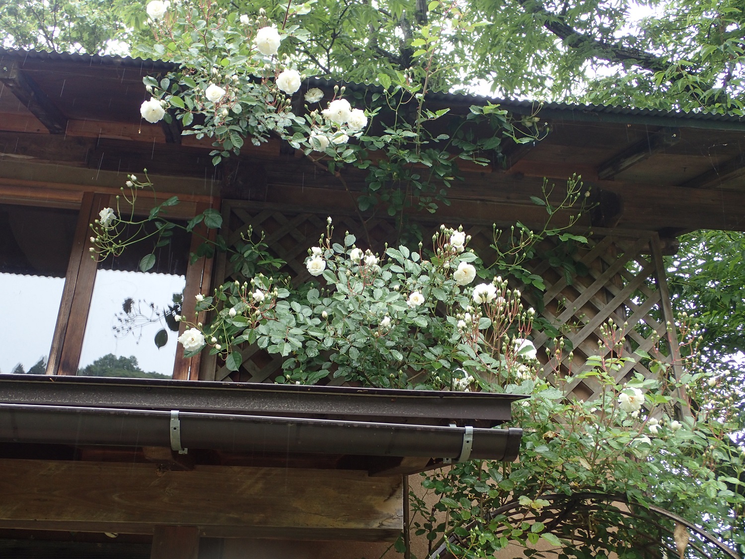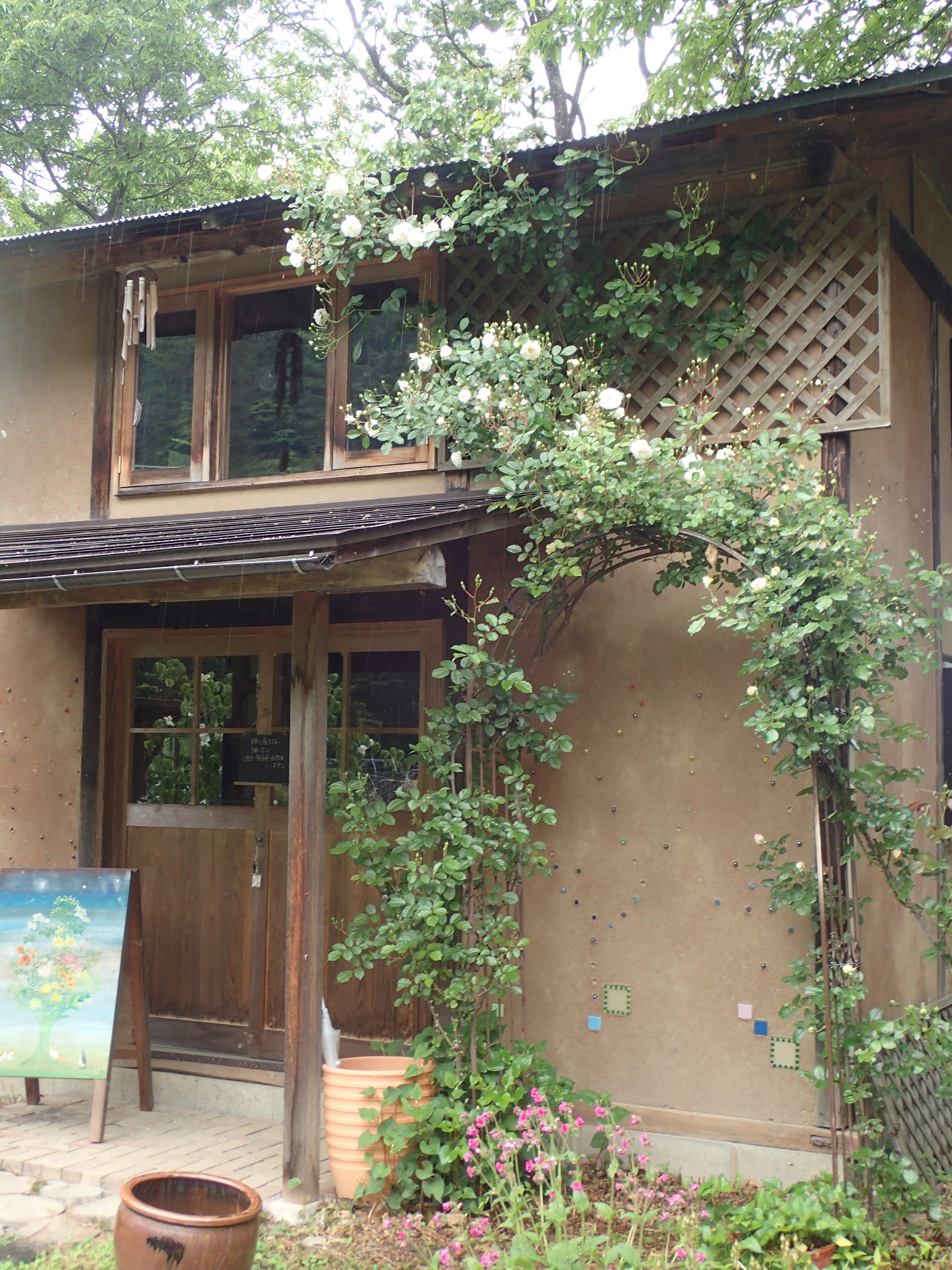 のらCaféのお庭では、白いツルバラも咲き始めています!