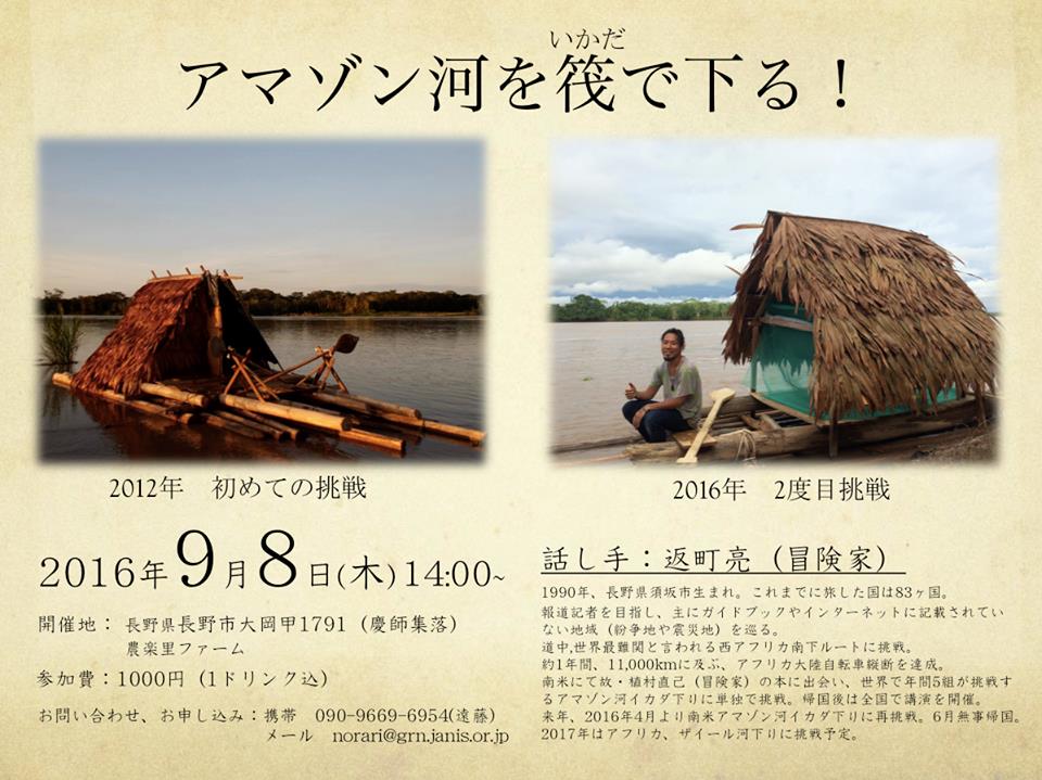 弱冠26歳、若き冒険家 返町(そりまち)亮さんのお話会を、農楽里ファームで開催します!