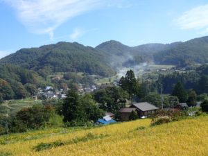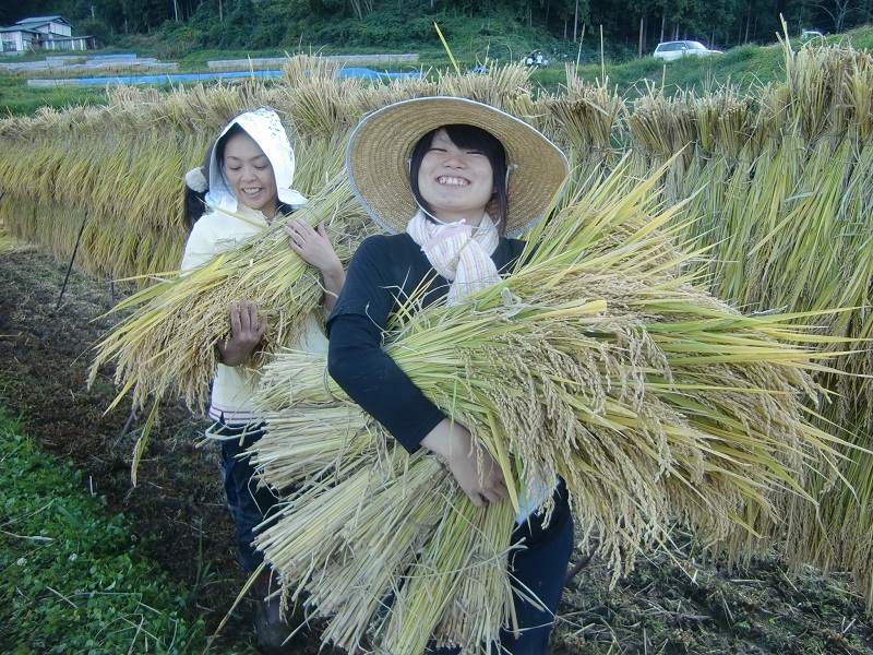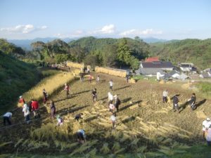 秋の良き日に、北アルプスを望む棚田でみんなで楽しく稲刈りをしましょう!