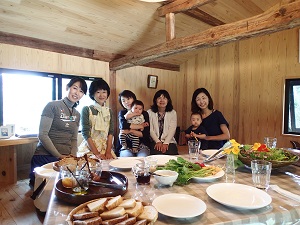 お昼ごはんは大きなテーブルをみんなで囲んで頂きます
