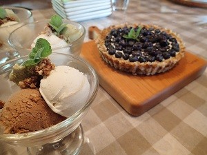 昨日のランチのスイーツは、ブルーベリーチーズタルト。