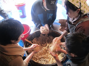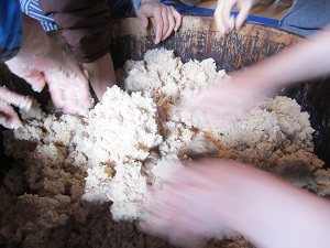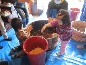 味噌作りワークショップの様子です・・・