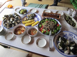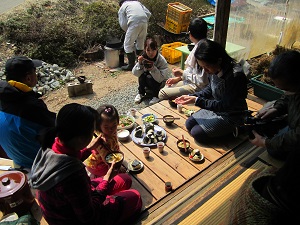 お昼ご飯には、竈で炊く汁ものと、自然農法のお米のおむすび等をご用意します。