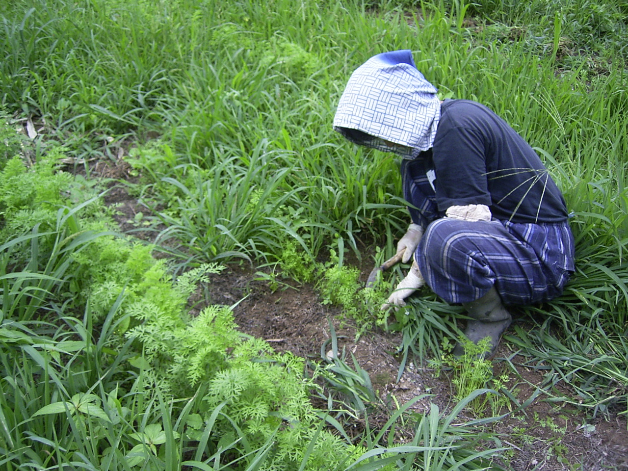 さて、そば畑の隣の畑では、今日も草取りが続きます。。