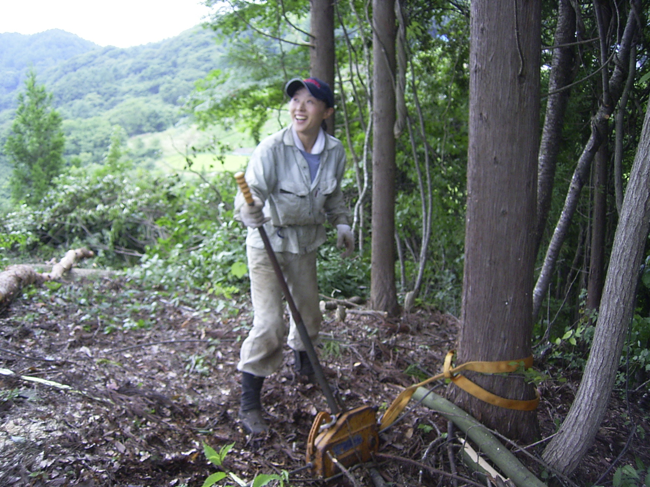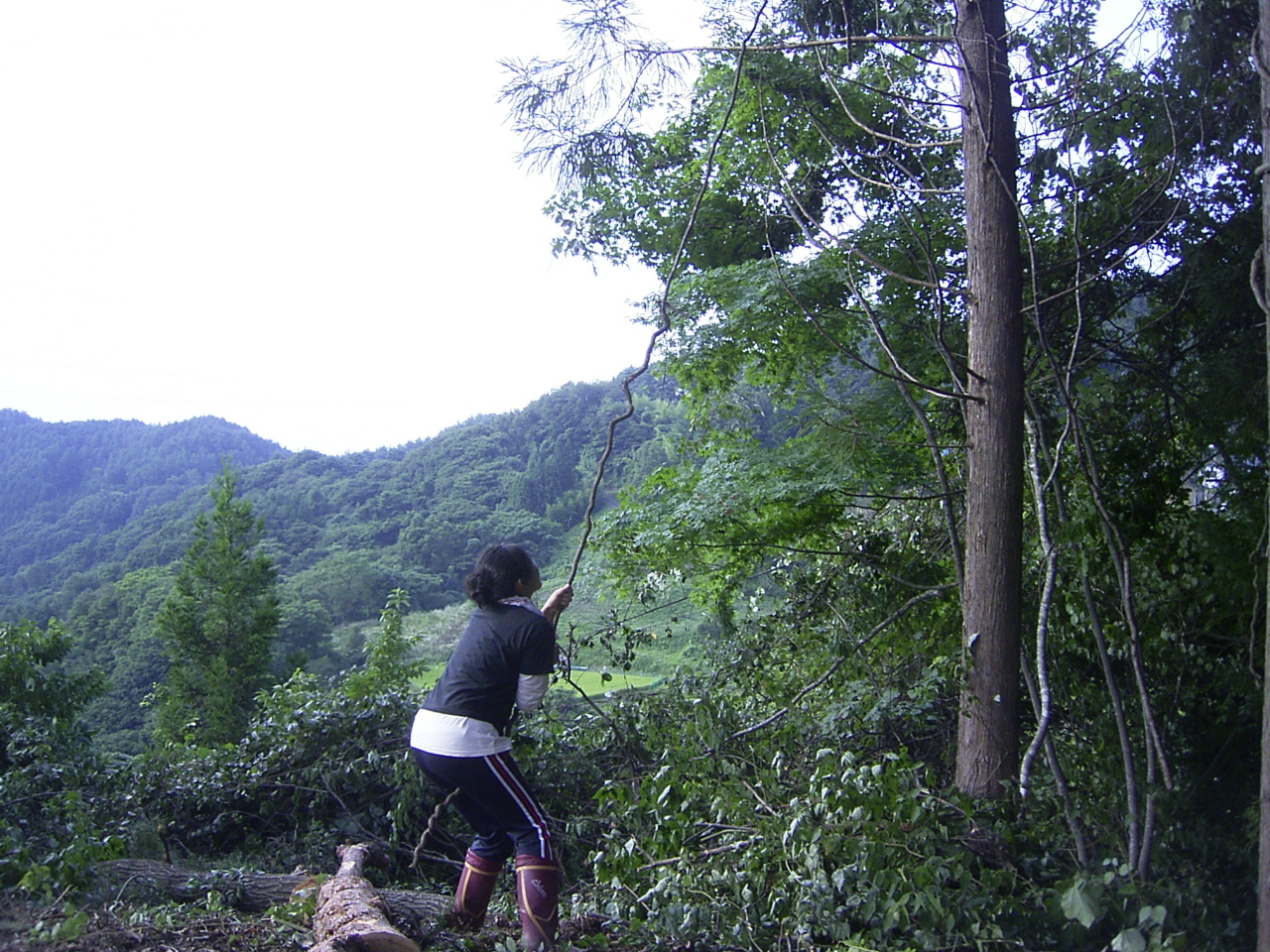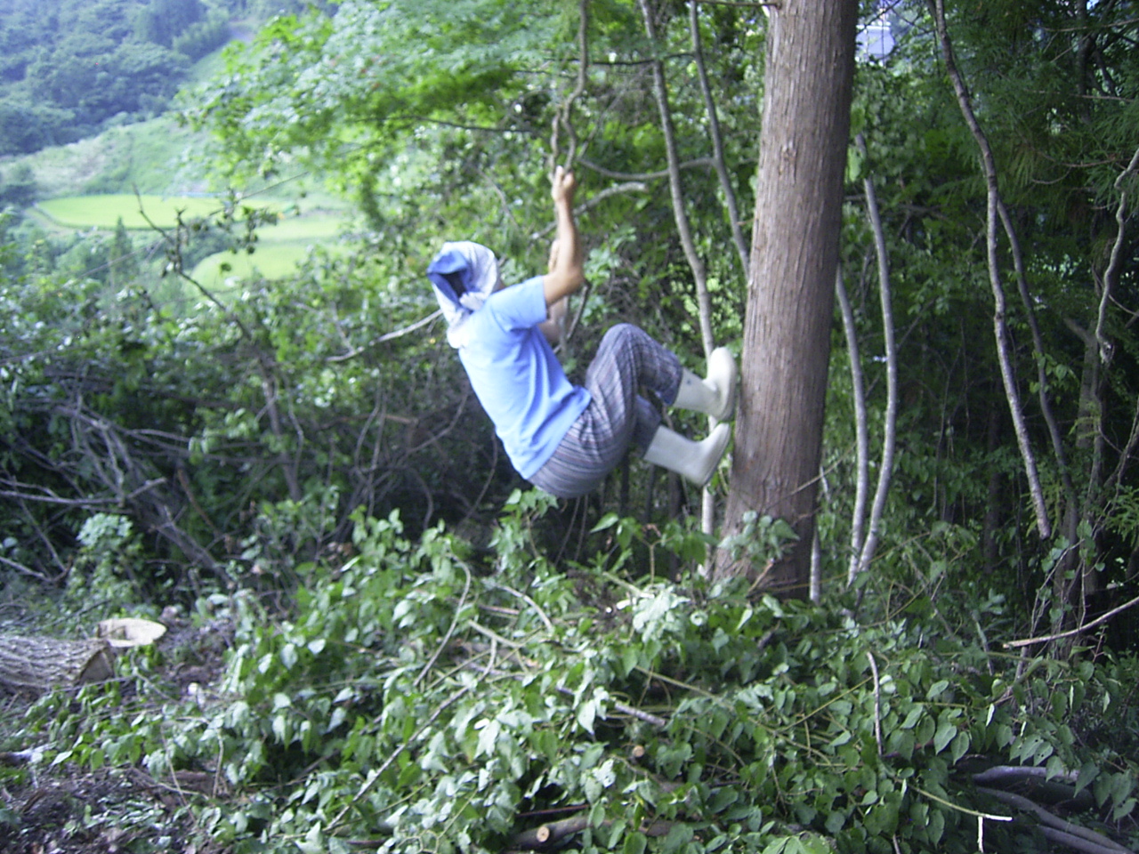 さて、集落に戻りまして・・原さんは昨日から始めた里山整備の仕事を続けます。