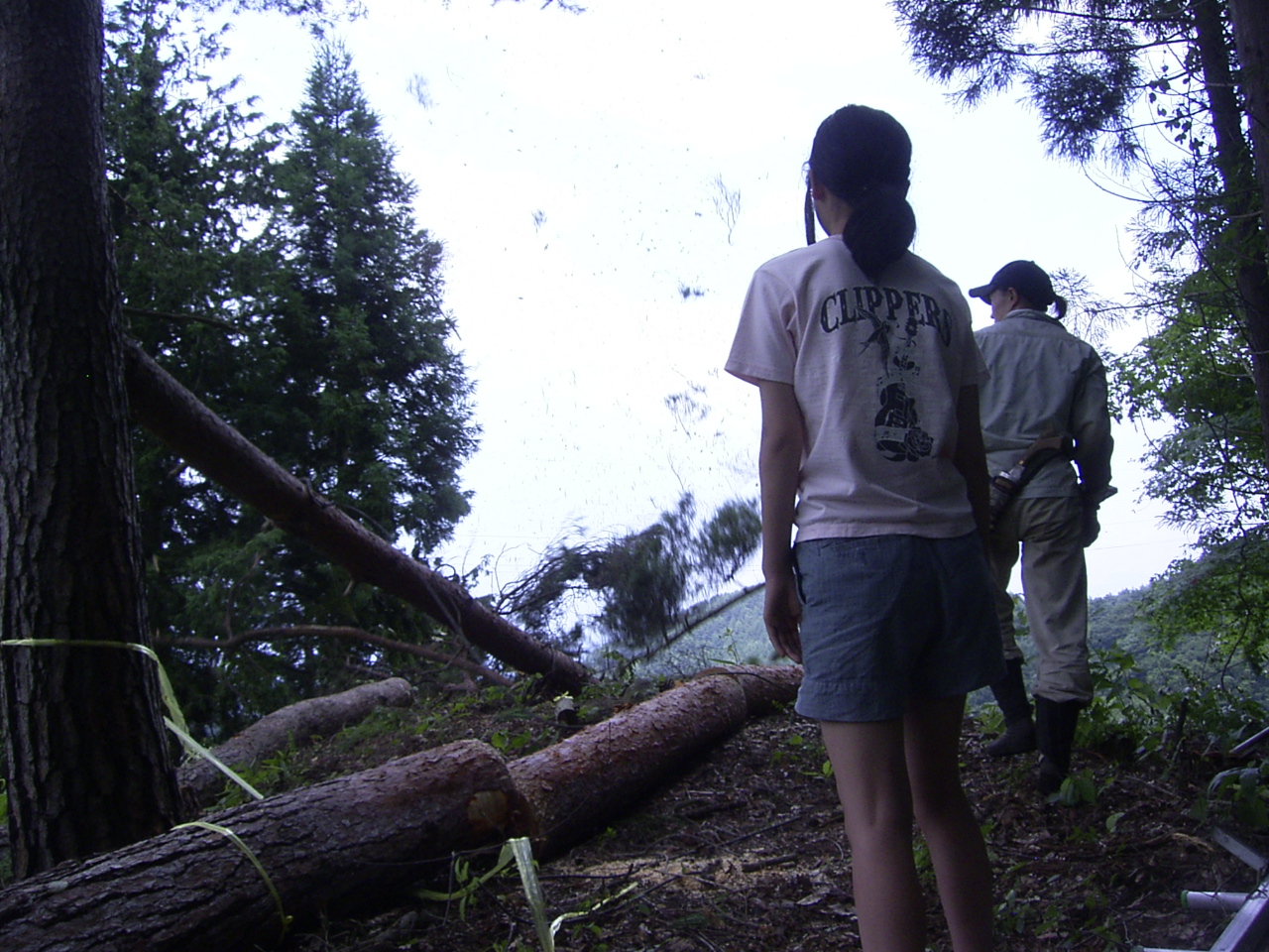 ギギギーーっと音を立てながら、アカマツが倒れて行きます。