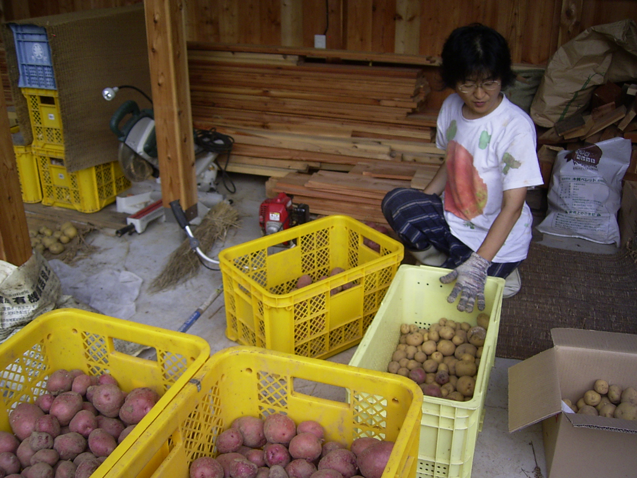 お客様がお帰りになった後は、掘り上げたジャガイモの選別です。