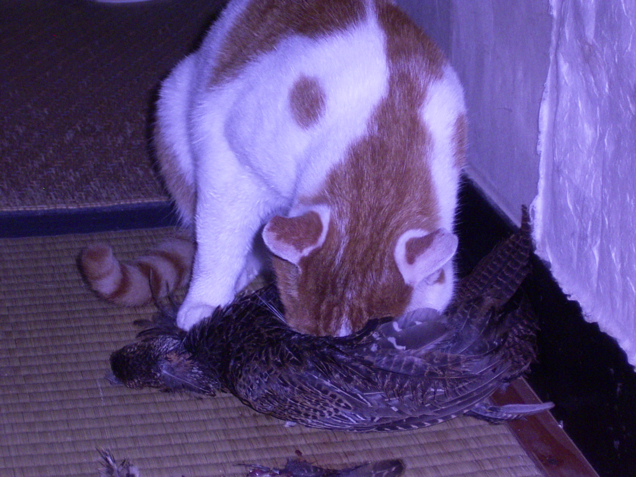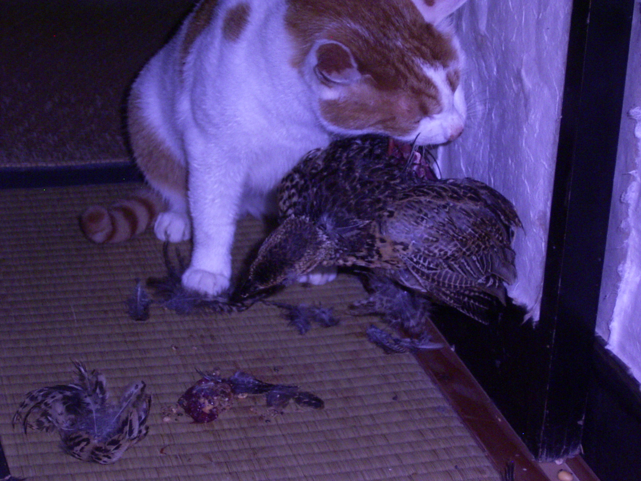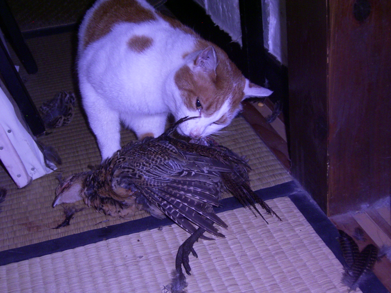 農楽里ファームの周りでは毎年春に幾種類もの鳥たちが巣立つのだが、今日は少し大きくなってきたウズラの幼鳥を見事仕留めた!かなり大きいので咥えるのに苦労をしたが、なんとか母屋へ運び込み、農楽娘の部屋で頂くことにする。