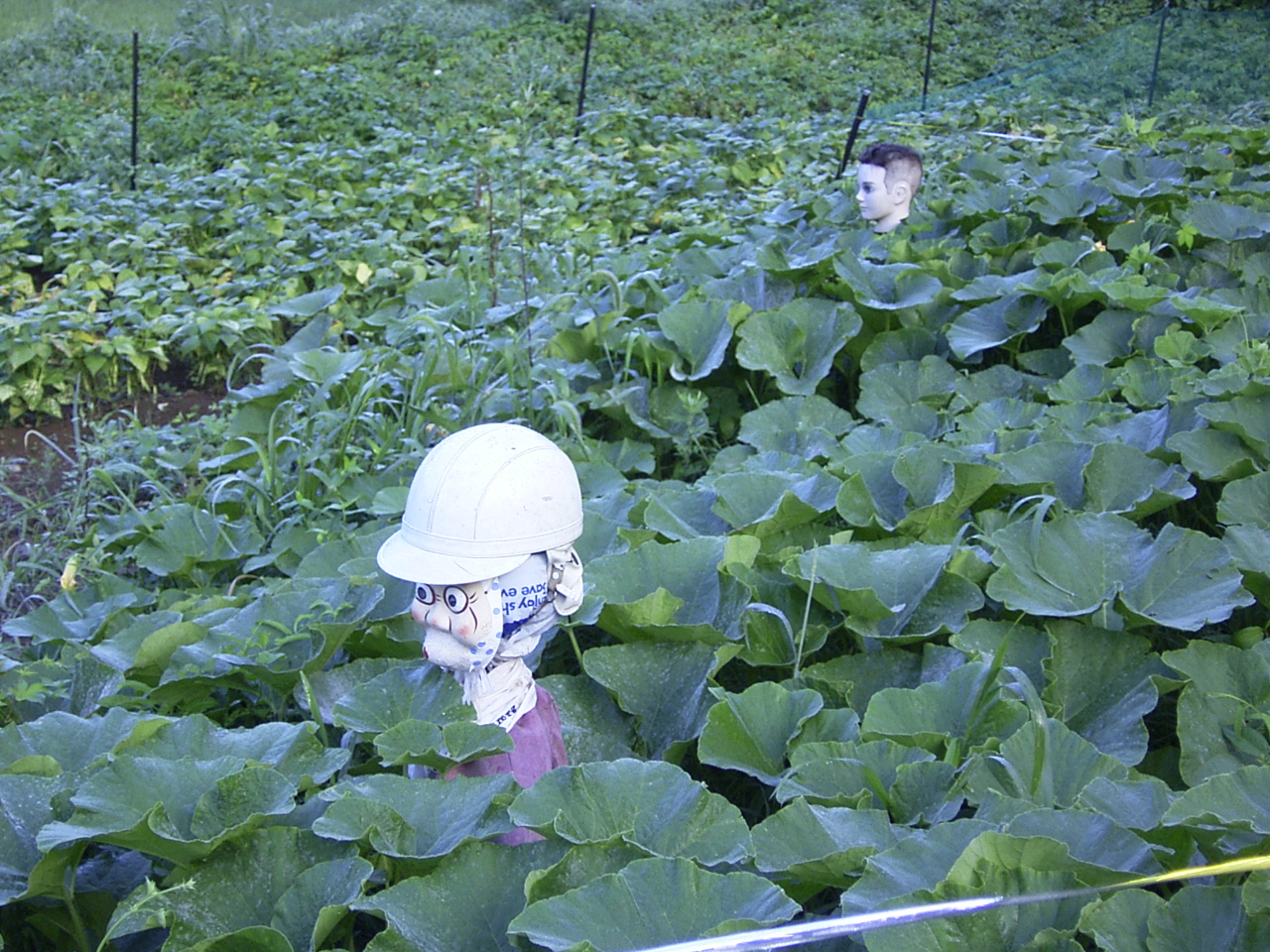 大岡へいらして、この案山子を発見された方には、農楽里ファームの古代米をプレゼントいたします(笑)