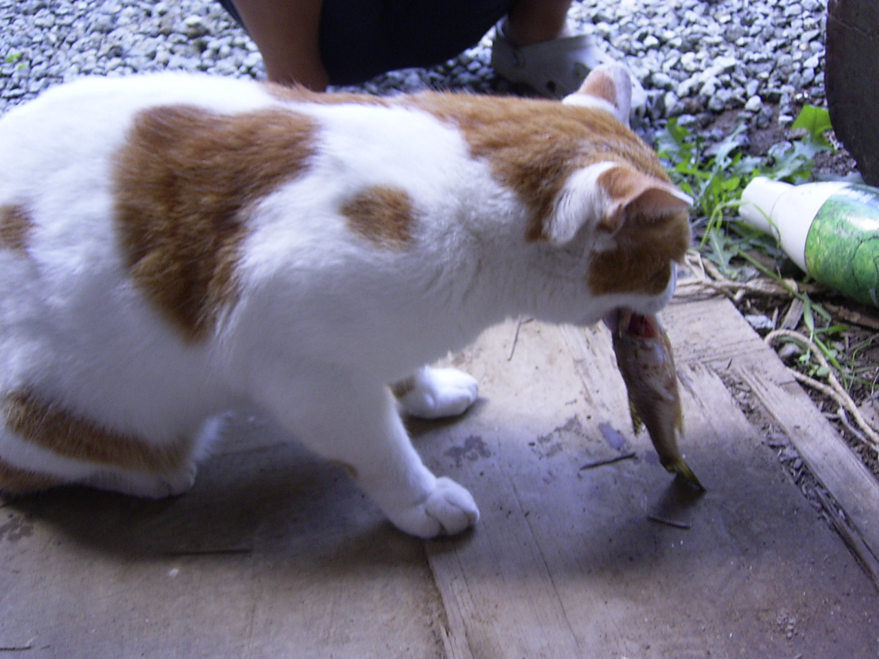 大漁でしたので、チャイにもご馳走が回りましたよ。「お魚くわえた農楽ねこ~♪」、であります。