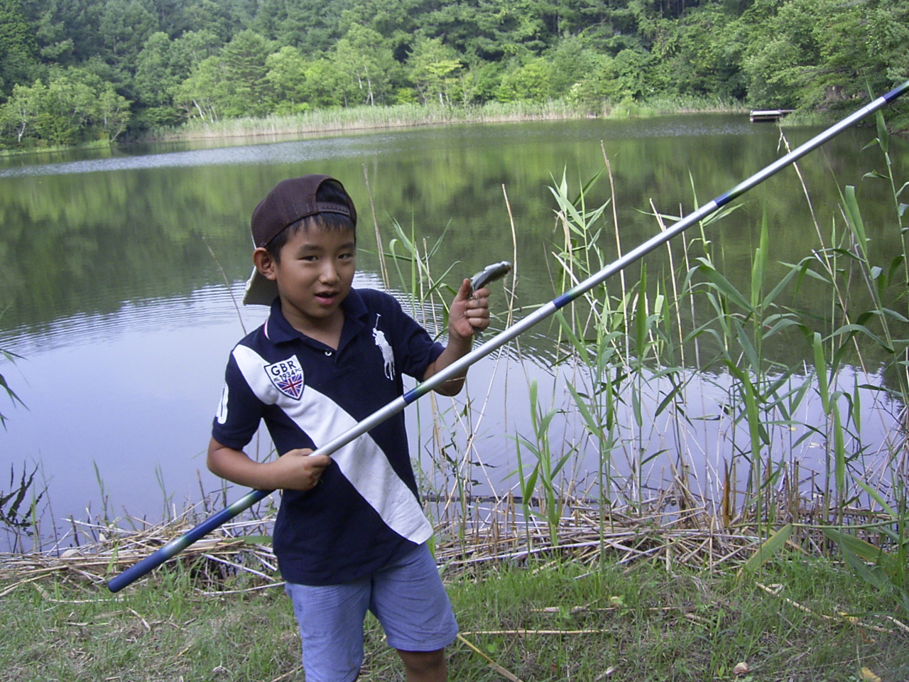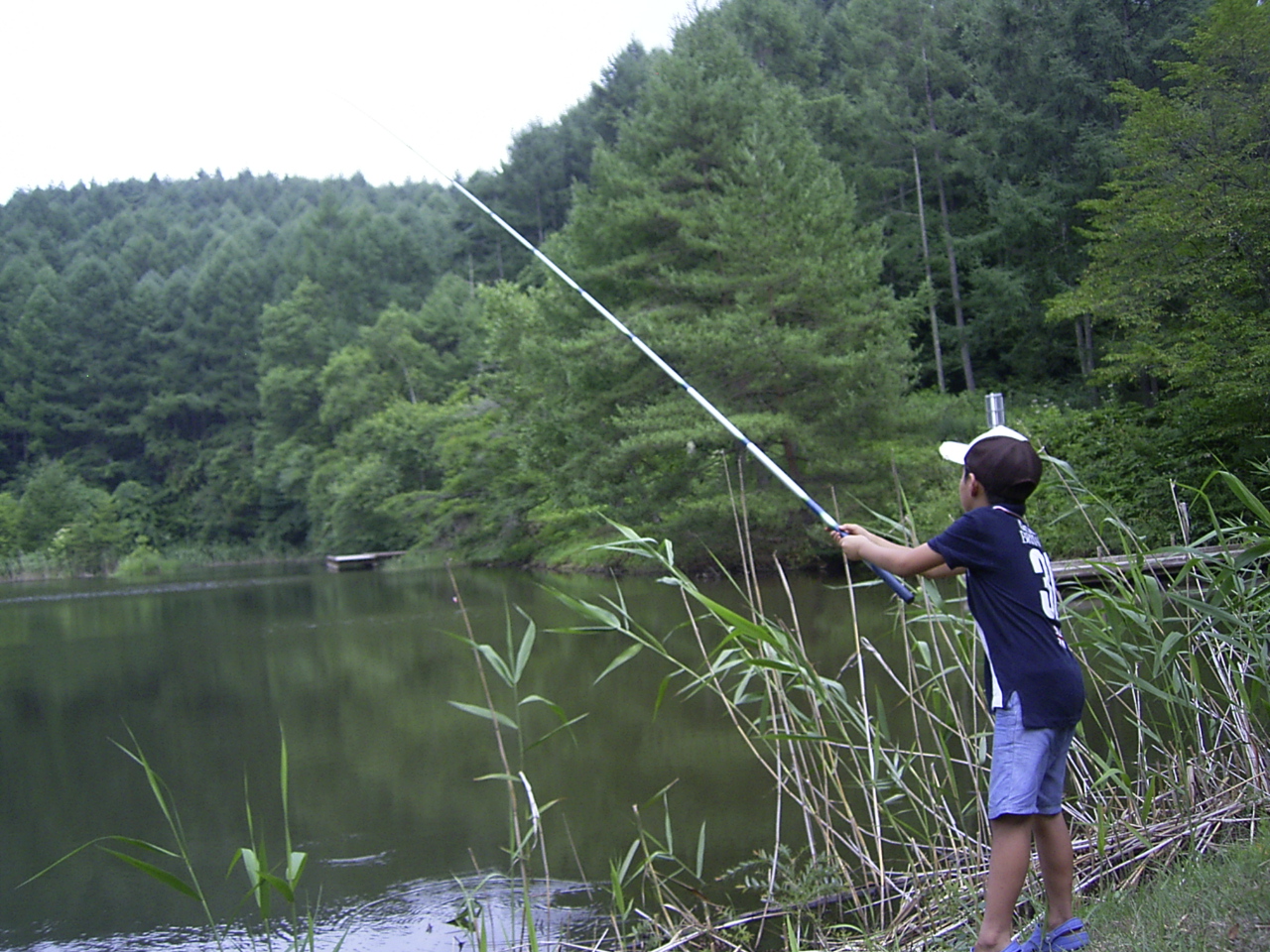 静寂に包まれる白樺湖。聞こえるのは、風の音と鶯の声・・・・その静寂を破る歓声が!!「おーー来た来た!!」百福くんが一人で釣り上げましたよ!