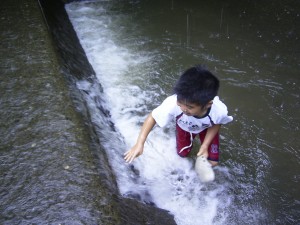 ぽつぽつと雨が降ってきましたが、沢での水遊びに