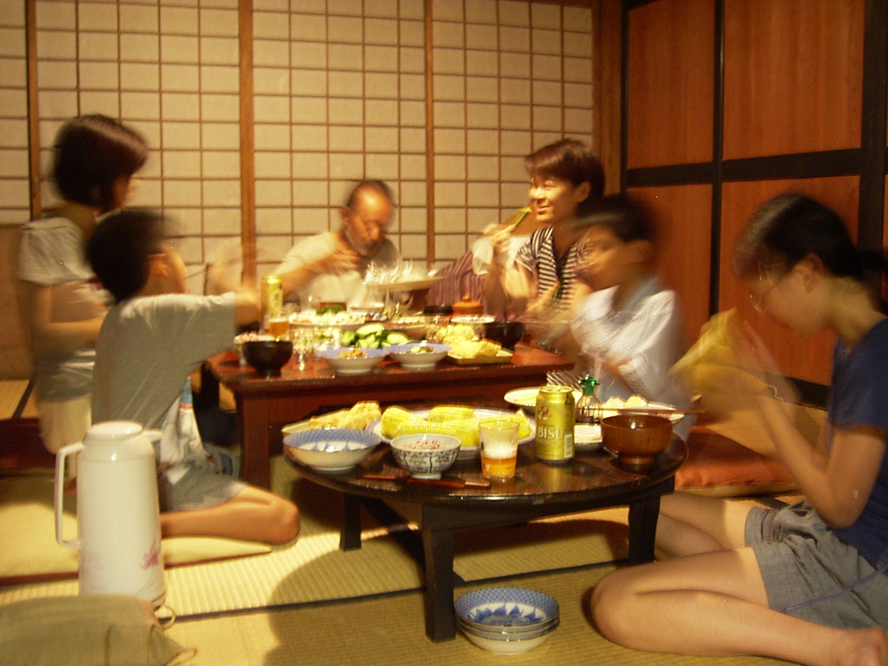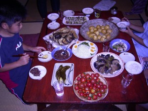 さてさて、母屋に戻りまして、楽しい夕飯。