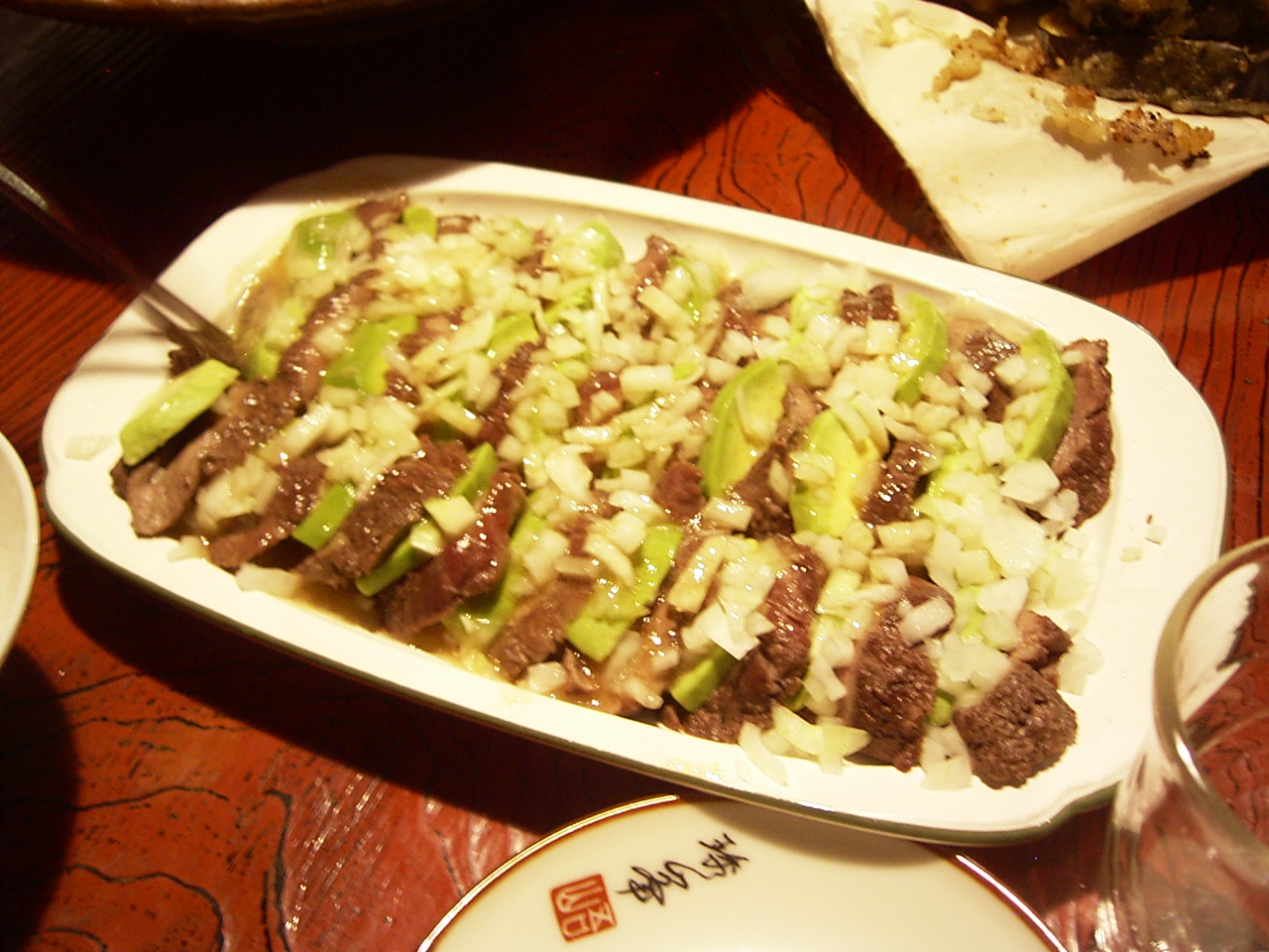 そして、夕飯には野生肉料理研究家の井上さんが差し入れに来てくれまして、、、シカ肉とアボガドと玉ねぎのみじん切りにドレッシングをかけたお料理が登場です。これがまた美味しくて…井上さん、どうもありがとうございました!