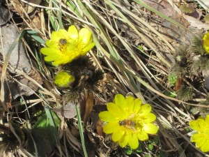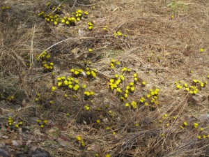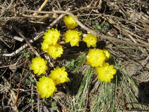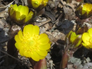農楽母さんは、やっぱり足元のフクジュソウ!お陽様に向かってキラキラと輝いていました。