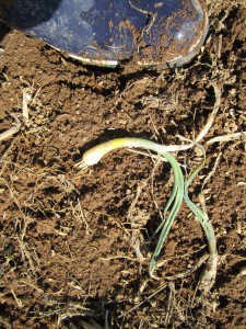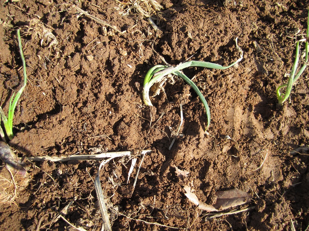 午後には、今年初の野良仕事!霜で浮き上がってしまったタマネギを植え直します。