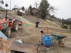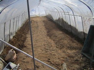 畑では、、ハウスの中に畝を立てる作業を始めました・・。