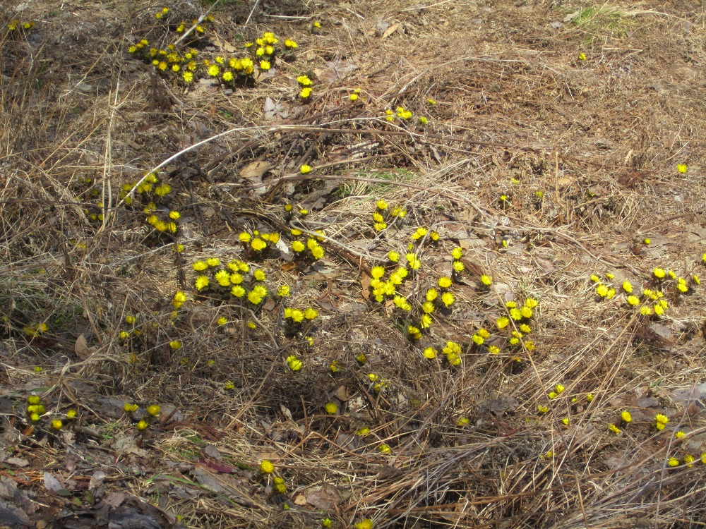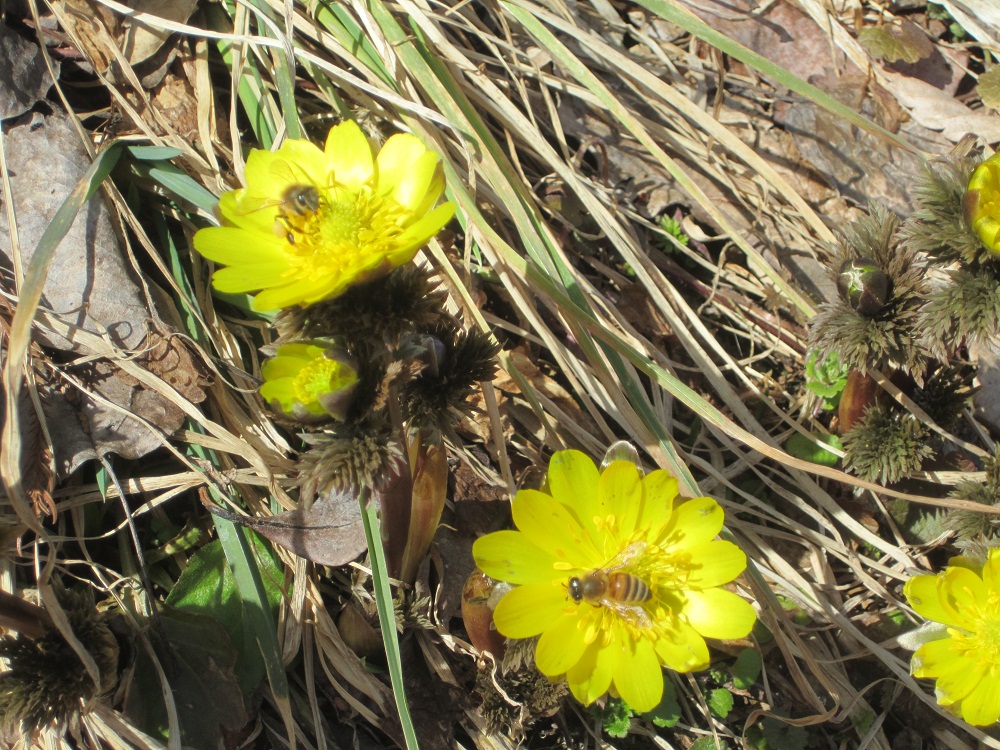 足元ではフクジュソウが満開に・・。お陽様を浴びて輝いています!