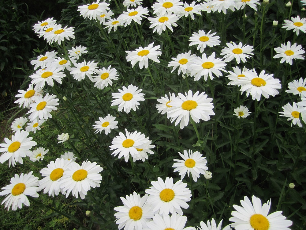マーガレットの花弁の白、そして、ドクダミの花の白色が眩しいです・・・。