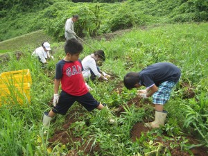 さて、、、一休みの後は、ジャガイモ堀りの続きです。
