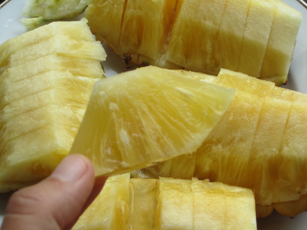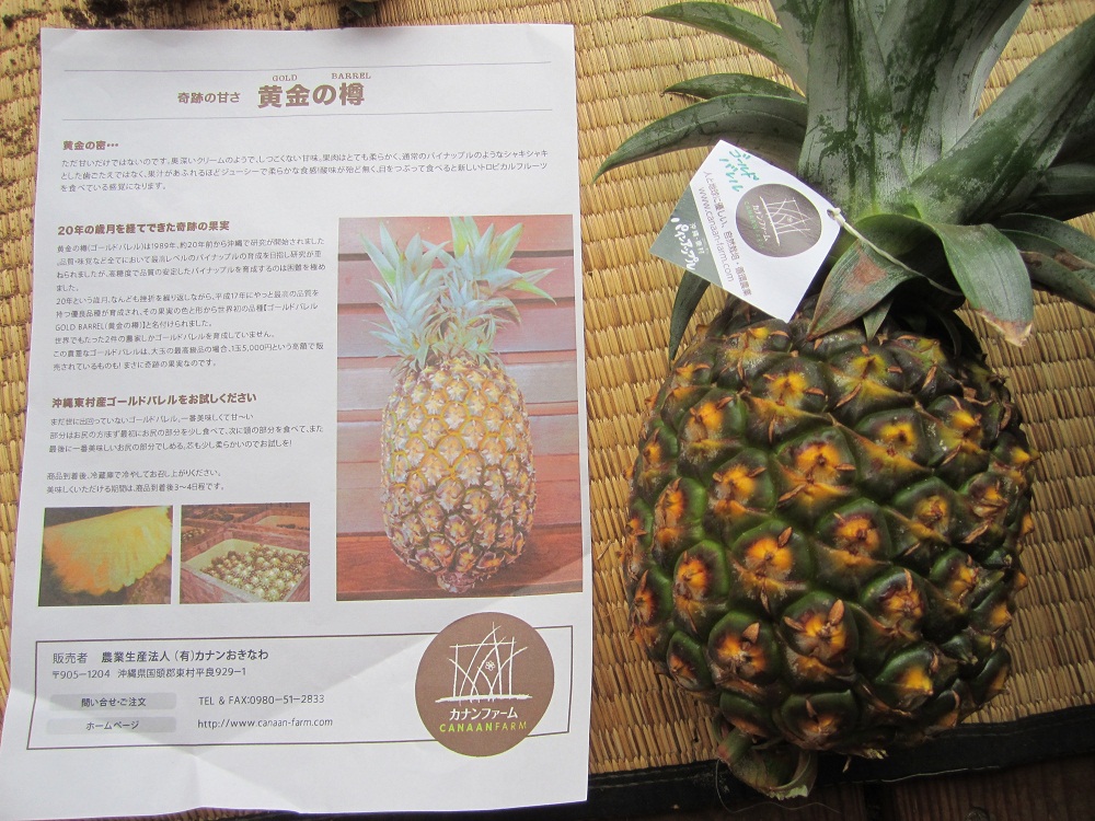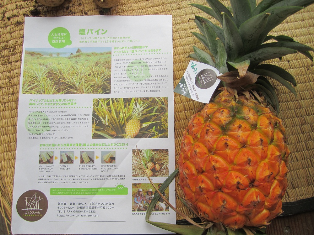 こちらは、カナンファームさん一押しの「塩パイン」。沖縄の海水を希釈散布して育てていますので、とても甘く味が濃いのです。