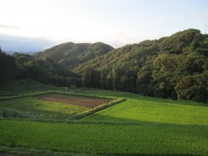作業を終え、夕暮れ間近の棚田です。