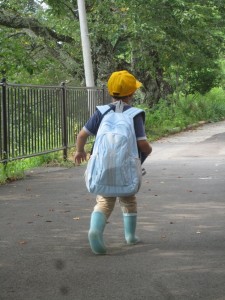 さて、写真は、大きなリュックを背負う小学一年生の男の子。