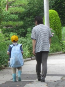 リュックが大きすぎてヨタヨタとしています。 あまりにも後ろ姿が可愛いのでパチリ、です。