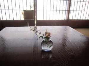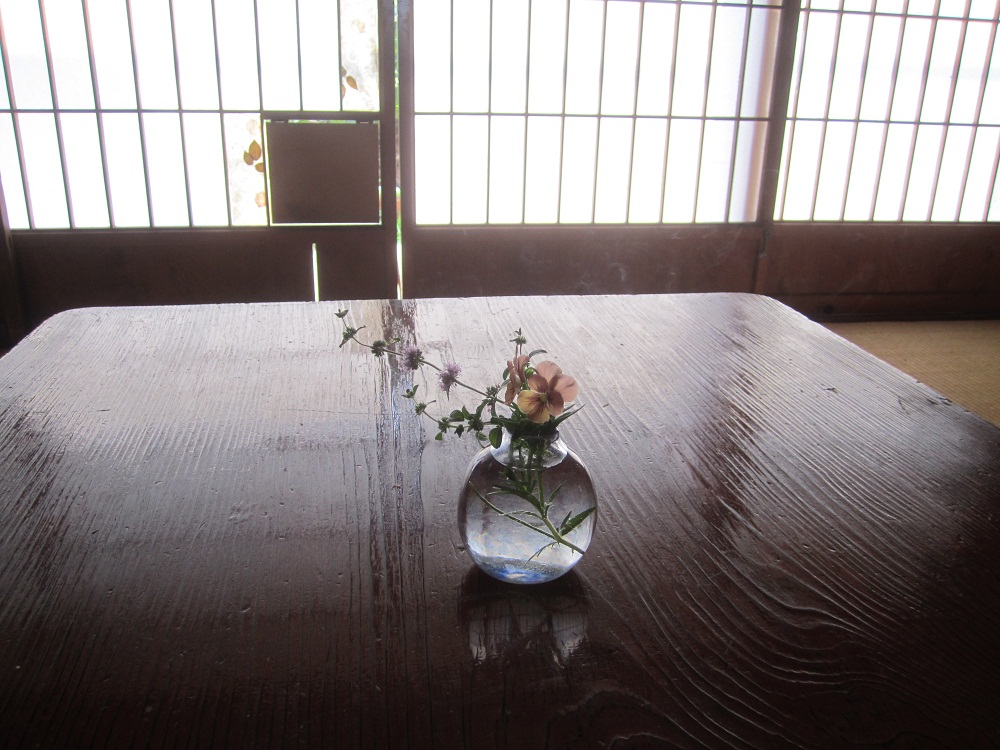 お庭に咲いている小さな花を飾り、お客様を迎えます。。