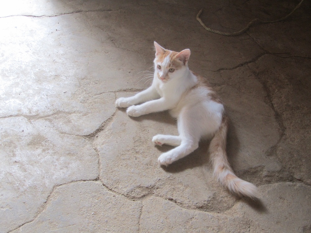 ミコ太はひんやりとした土間で涼みます・・。