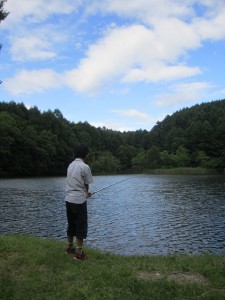 早速、白樺湖へ行き夕飯の一品のバス釣りをします。