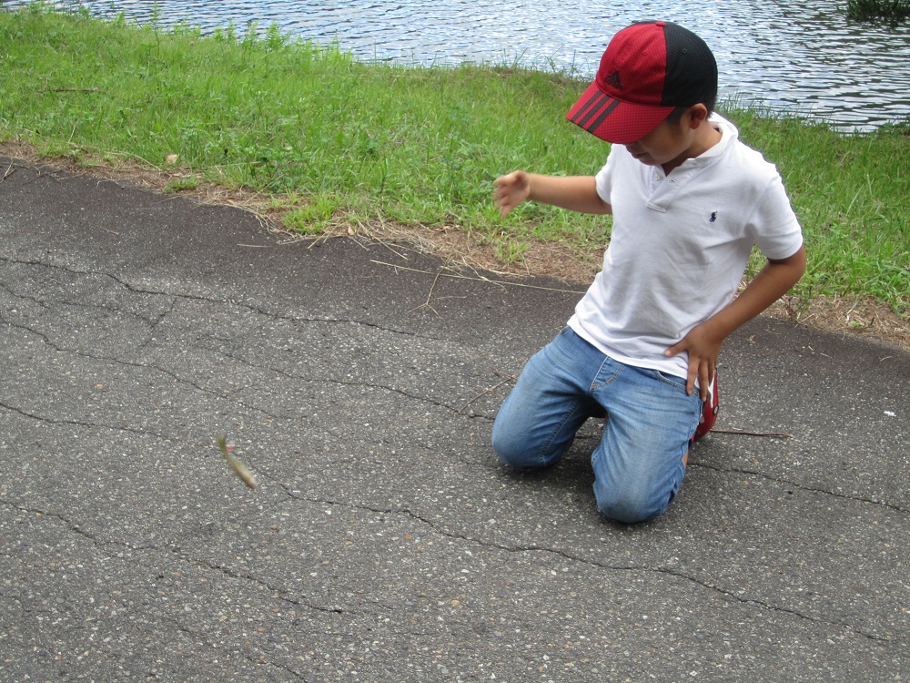 百くんも敬大くんも一年でとてもたくましくなり、自分でミミズを掘り自分でミミズを付け釣ったバスも自分で針をはずして生簀に入れました。