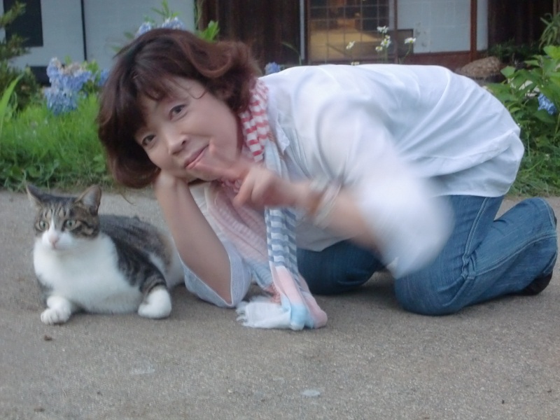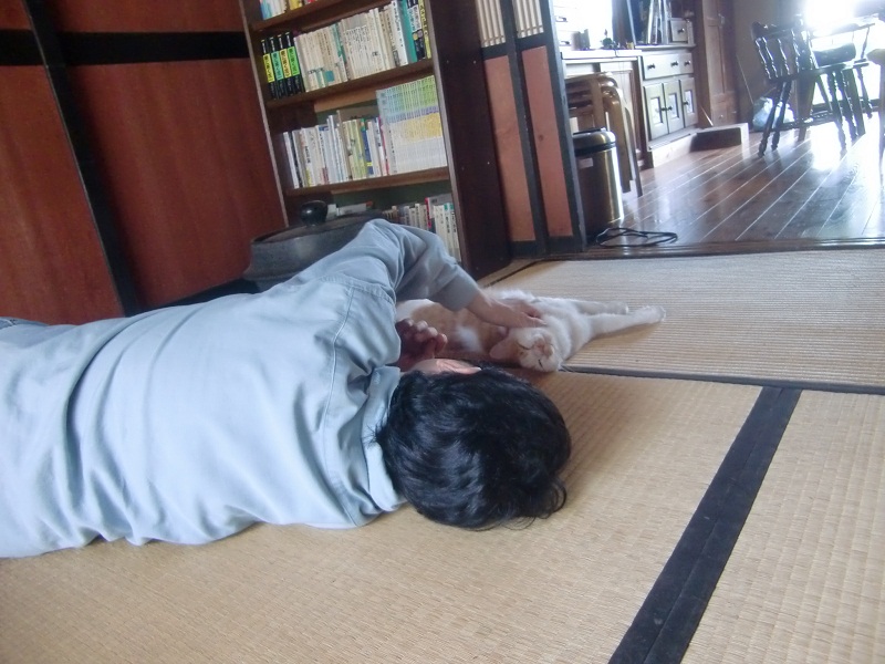 その間、食事の準備にかかりっきりの佐藤さん、、束の間縁側でミコ太とくつろぎます。