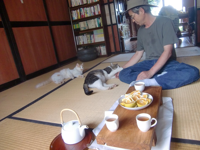 一昨日、遊びに来て下さいました笠井さんと小宮山さん、そして農楽にゃんこたち。