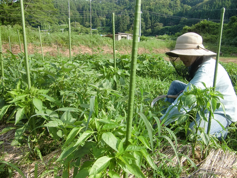 今日は、埼玉からお手伝いに来て下さいましたサエコさんと一緒に畑の草刈りをしました。