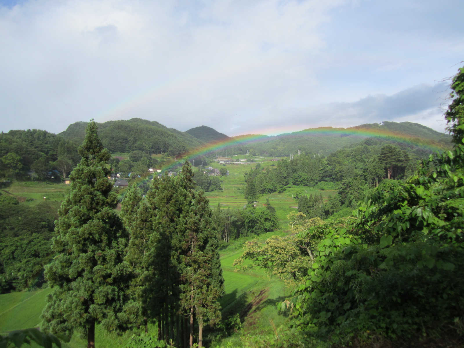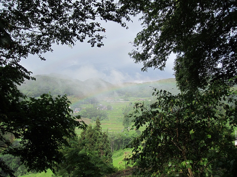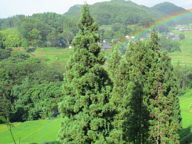 今日は夕方、とても鮮やかな2重の虹が、眼下の棚田にかかりました。