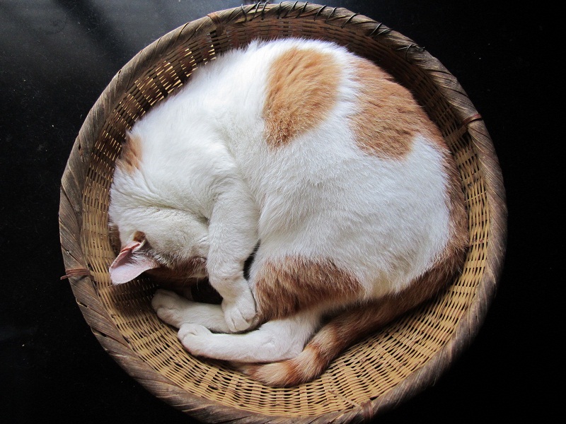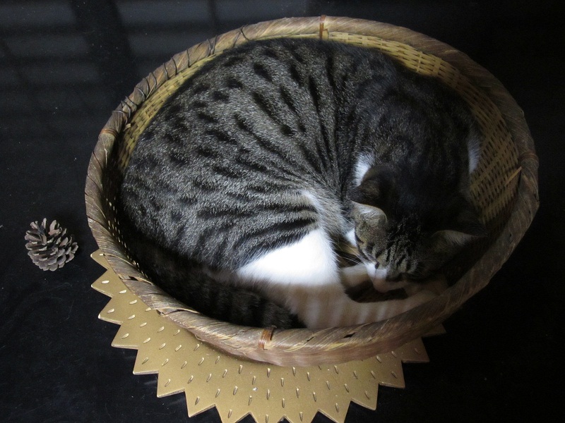 周囲はバタバタとしているというのに、、、この籠はよほど、ねこ心地が良いのでしょうか・・。