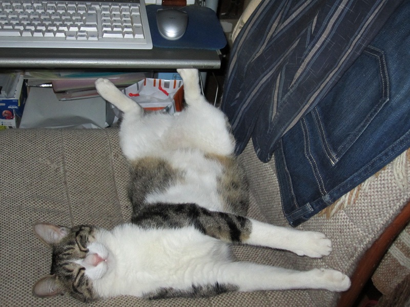 パソイス(パソコンのイス)で、Tの字になって寝ているチビ太。。