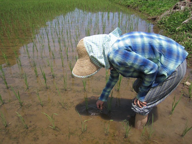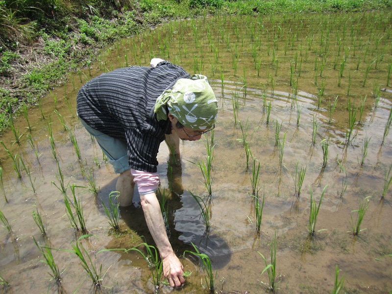 農作業は、東京からお越しのお客様と一緒に田草取りを行いました。