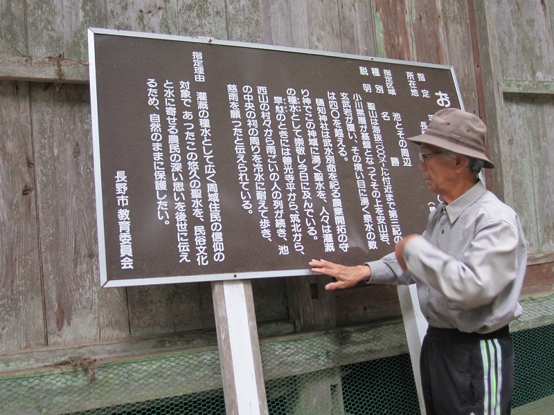 大岡の文化財について一番お詳しい、池内朝雄先生といっしょに樋知神社とお種池にお参りをしました。