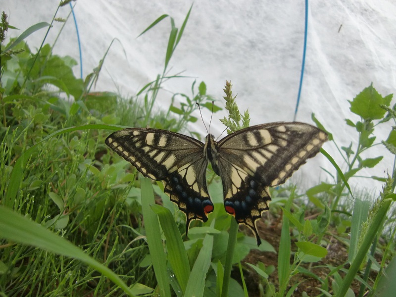ふと気が付きますと、トンネルの中に、羽化したばかりのキアゲハが羽を広げていました!