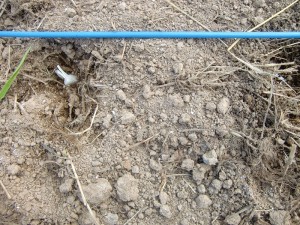 ホワイト六片という品種のタネをばらし、約20センチ間隔で5センチくらいの深さに植えていきます。