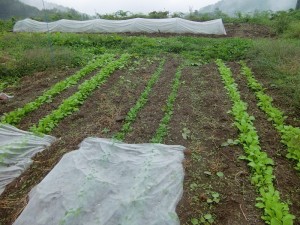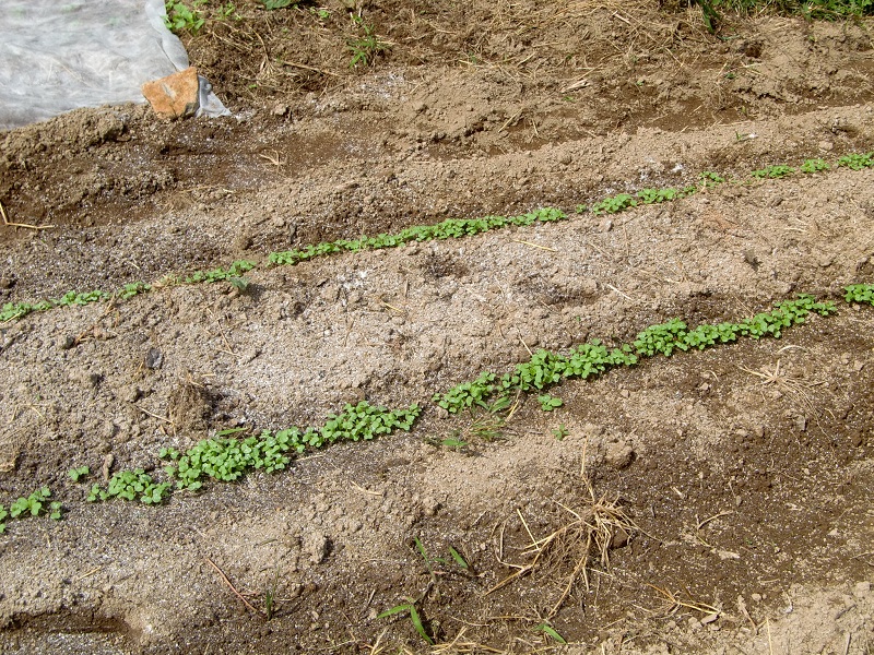 ここ数日間の雨のおかげで、畑の菜っ葉たちも勢いを増してきました。