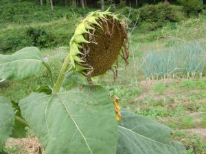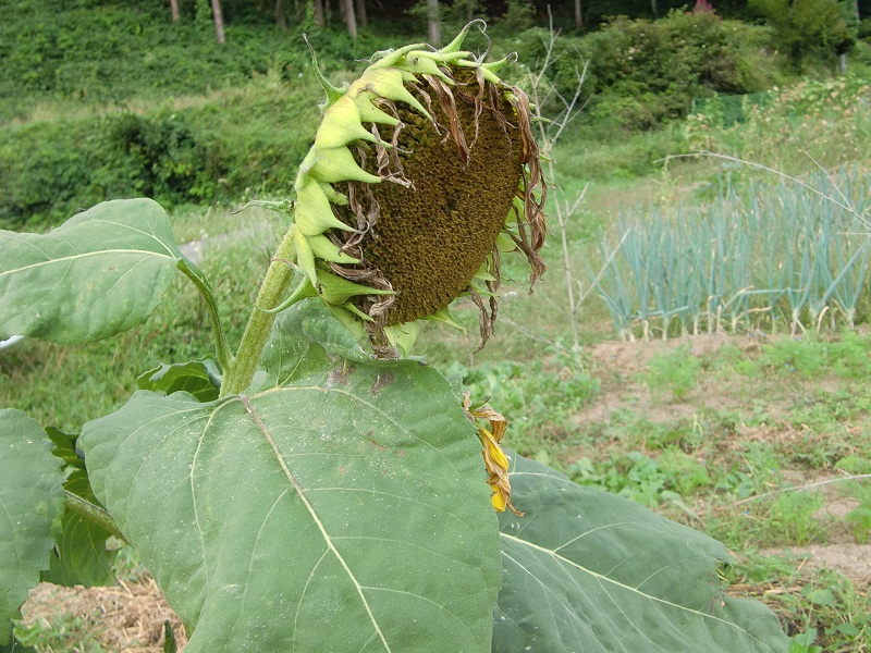 畑の横では、、ヒマワリがだいぶおばあちゃんになって来ていました。。
