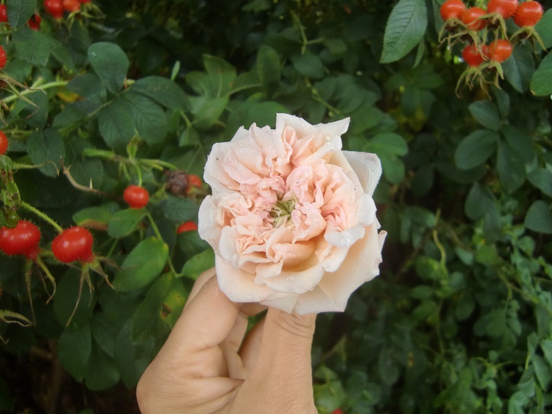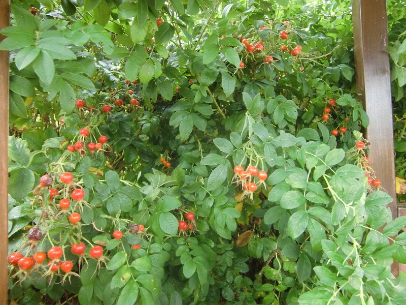 スピーシーズというバラのヒップ(バラの実)がたわわに茂る東屋にて、、、