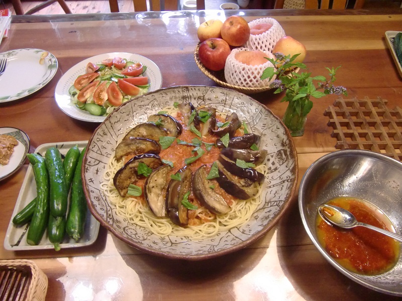 お昼には、仕込んでおいたトマトソースで、パスタを仕上げてくださったのですが、、