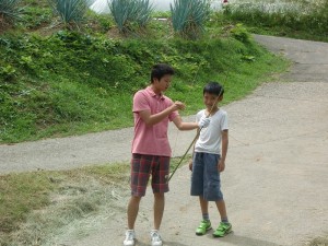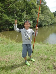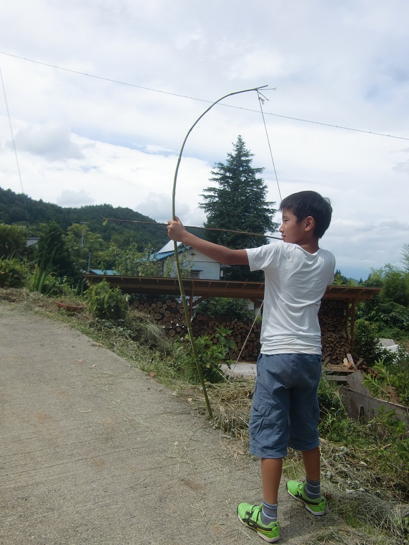 さて、、午後は、農楽息子が百くんのために竹で弓を作ってくれました。