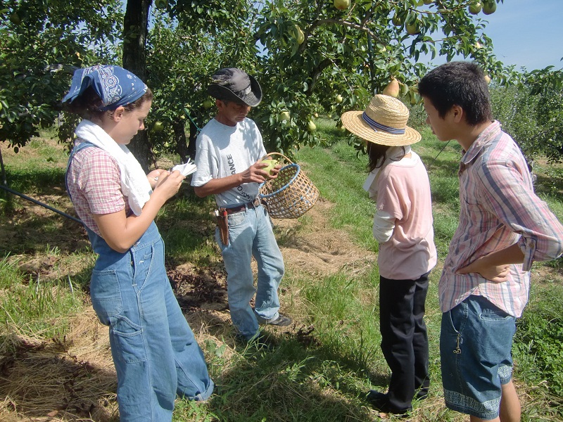ウィニーさんは、果樹のことなど熱心に取材中。